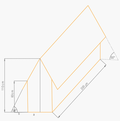 Zauważ, że namiot składa się z dwóch prostopadłościanów o podstawie trapezu.