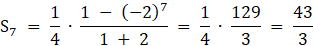 W tym zadaniu musisz znaleźć sumę siedmiu początkowych wyrazów ciągu geometrycznego spełniającego podane warunki, korzystając z odpowiedniego wzoru.