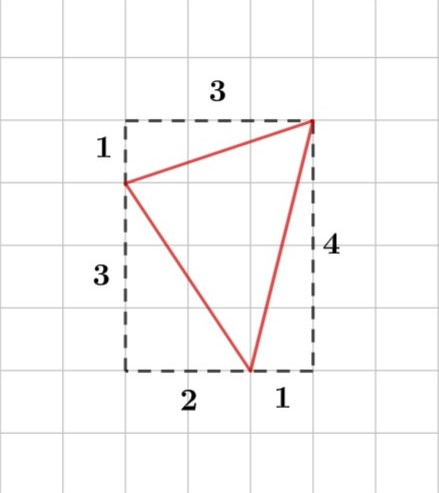 W tym zadaniu musisz obliczyć pole przedstawionego trójkąta, zakładając, że jedna kratka = 1.