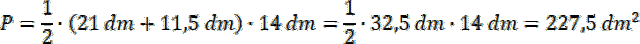 Podstawy trapezu to równoległe boki trapezu. Wysokość to odcinek prostopadły do tych boków. Zauważ, że część dolnej podstawy trapezu jest równa tyle, ile górna, ponieważ są one odpowiadającymi sobie bokami prostokąta. Podstaw te dane do wzoru na pole trapezu