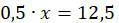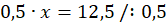 Aby obliczyć wartość x, należy podzielić 12,5 przez 0,5: