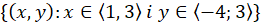 Popatrz na przykład, w jaki sposób podaje się przedziały na płaszczyźnie iloczynu kartezjańskiego. Następnie zapisz w podobny sposób zbiór punktów, jaki zaznaczono na rysunku.