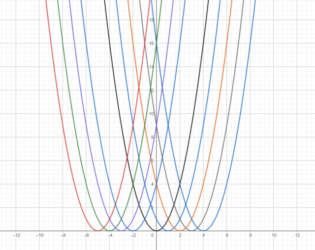 Można zauważyć, że dla wykresy kolejnych paraboli pokryją całą płaszczyznę nad osią OX parabole z rodziny stworzą półpłaszczyznę.