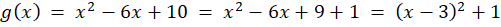 Wykres funkcji g jest przesunięciem wykresu funkcji f o 3 jednostki w prawo oraz o jedną jednostkę w górę, zatem