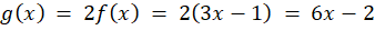 Aby wyznaczyć wzór funkcji g, musisz całe równanie funkcji f przemnożyć przez 2.