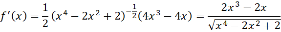 Wyznacz pochodną podanej funkcji i jej miejsca zerowe oraz najmniejszą wartość funkcji - miejsce w którym wykres funkcji zmienia monotoniczność (zmiana funkcji z malejącej na rosnącą). Pamiętaj o uwzględnieniu dziedziny.