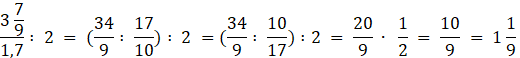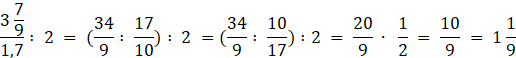 Wykonaj dzielenie w ułamku piętrowym, a następnie podziel wynik przez 2: