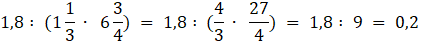 Wykonaj mnożenie w nawiasie, a następnie podziel 1,8 przez wynik mnożenia: