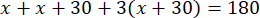 W tym zadaniu oblicz miary kątów trójkąta ABC, jeśli miara kąta przy wierzchołku B jest o 30° większa od miary kąta przy wierzchołku A i trzy razy mniejsza od miary kąta przy wierzchołku C.