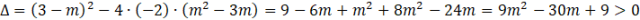 Aby funkcja kwadratowa miała dwa (jakiekolwiek) rozwiązania, jej wyróżnik musi być większy od 0.