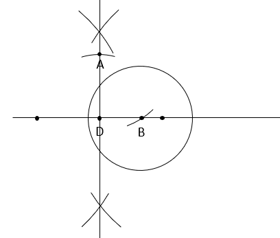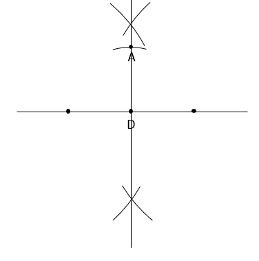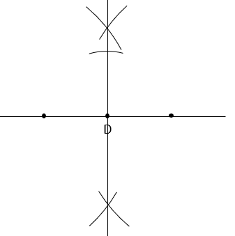 Połącz punkty przecięcia łuków. Punkt przecięcia prostych oznacz przez D.