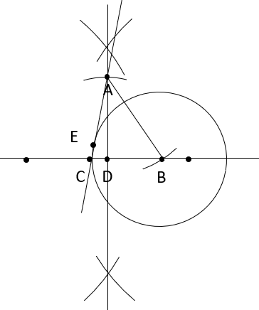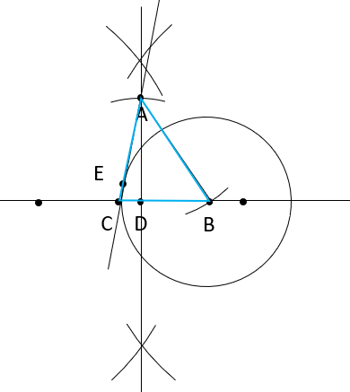 Odmierz długość odcinka BE. Wbij cyrkiel w punkt B i zakreśl okrąg o wyznaczonym promieniu.