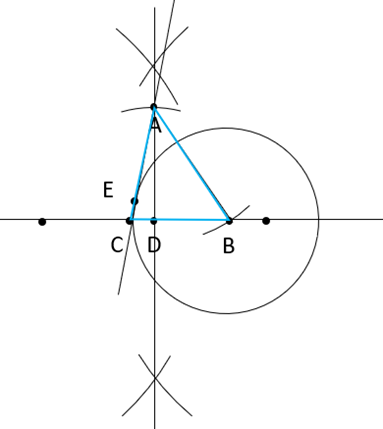 Punkt przecięcia stycznej z prostą DB wyznacza punkt C, będący trzecim wierzchołkiem trójkąta.