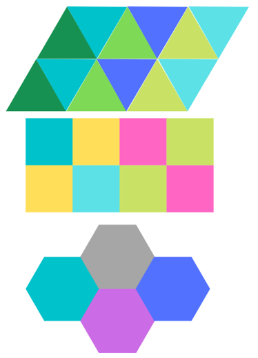 Taki parkiet można zbudować z trójkątów równobocznych, kwadratów i sześciokątów foremnych.
