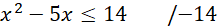 Przenieś wszystkie wyrażenia na jedno stronę. Oblicz miejsca zerowe, narysuj wykres funkcji kwadratowej i odczytaj z wykresu rozwiązania.