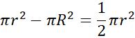Następnie oblicz pole pierścienia, przyjmując za promień małego okręgu R.