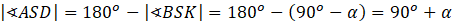 Zauważ, że kąty ASD i BSK są przyległe, więc suma ich miar wynosi