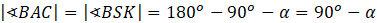 Na tej podstawie zapisz miarę kątów BAC i BSK. Skorzystaj z tego, że suma miar kątów w trójkącie wynosi