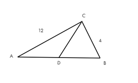 W trójkącie ABC, w którym |AC| = 12 cm, |BC| = 4 cm, dwusieczna kąta ACB przecina bok AB w punkcie D, a pole trójkąta ADC jest o 6√3 cm² większe od pola trójkąta DBC. W tym zadaniu musisz obliczyć pole trójkąta ABC.