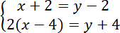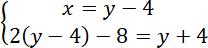 Drugie równanie układu powstało dzięki informacji: gdyby przełożyć 4 gruszki z pierwszego kosza do drugiego, to w drugim koszu byłoby dwa razy więcej gruszek niż w pierwszym.