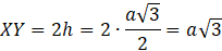 Wykonaj rysunek pomocniczy. Zauważ, że sześciokąt foremny można podzielić na 6 trójkątów równobocznych. Zauważ, że długość XY składa się z dwóch wysokości trójkątów równobocznych o boku a. Długość ZX ma długość a. Oblicz długość ZY z twierdzenia Pitagorasa. Skorzystaj z faktu, że miary kątów w trójkącie o bokach długości