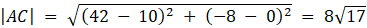 Po rozwiązaniu dostaniemy punkty B(42,8) i C(42,-8).