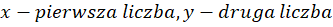 Zapisz podaną treść w postaci układu równań, wyznacz x i y, a następnie skorzystaj ze wzoru