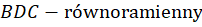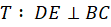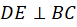 Najpierw oblicz miarę kąta ADB, korzystając z sumy kątów w trójkącie. Następnie zauważ, że jest równy mierze kąta DBC, więc trójkąt BDC jest równoramienny. Skoro punkt E jest środkiem podstawy BC w trójkącie, to odcinek DE jest wysokością na nią poprowadzoną, więc jest on prostopadły do tego boku.