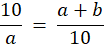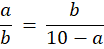 Wyznacz boki prostokątów, które powstały w wyniku podzielenia prostokąta o boku wynoszącym 10, wiedząc, że są one podobne do wyjściowej figury.