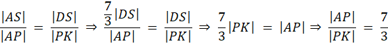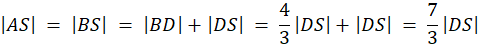 Poprowadź prostą równoległą do prostej AS, która przechodzi przez punkt D. Następnie skorzystaj z twierdzenia Talesa, aby wyznaczyć stosunki odpowiednich odcinków.