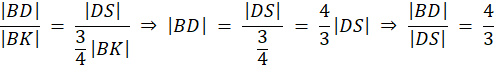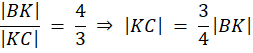 Wyznacz stosunek długości odcinków, na które zostały podzielony odcinek AK przez środkową CS w trójkącie ABC, wiedząc, że zachodzi relacja |BK| : |KC| = 4 : 3
