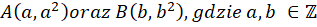 Dla dwóch wybranych punktów o współrzędnych całkowitych należących do wykresu funkcji