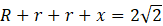 Zauważ, że przekątna to suma długości promienia okręgu o środku A, średnicy: czyli dwóch promieni okręgu o środku B i długości x.