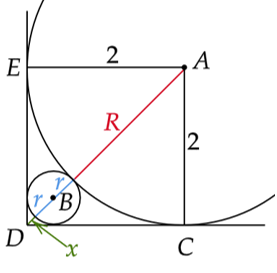 Zauważ, że figura ACDE jest kwadratem o boku 2. Boki AE i AC są promieniami okręgu.