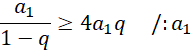 Udowodnij, że w nieskończonym ciągu geometrycznym o dodatnich wyrazach suma wszystkich wyrazów nie może być mniejsza niż liczba cztery razy większa od drugiego wyrazu tego ciągu.