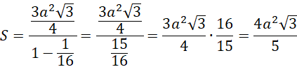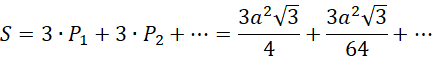 W naszym przypadku powierzchnie trójkątów tworzą nieskończony ciąg geometryczny.