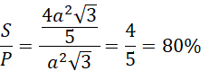 Ustal, jak procent powierzchni całej figury zostanie zamalowany, kiedy to działanie będziemy powtarzać w nieskończoność, wiedząc, że trójkąt równoboczny został podzielony na cztery przystające trójkąty. Następnie trzy z nich zostało zamalowanych, a z czwartym powtórzono procedurę (jak na rysunku).
