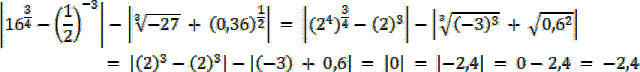 Aby rozwiązać to zadanie, należy uprościć zapis liczb z potęgami i pierwiastkami, następnie wykonać działania na liczbach i wyciągnąć je z wartości bezwzględnych.