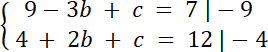–3b + c = –2 | + 3b