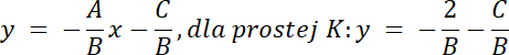 Równanie ogólnej prostej K, można przedstawić w postaci kierunkowej, gdy B ≠ 0,