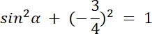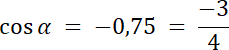 cos α = –0,75⇒ α ∊ (90°, 180°)