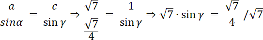W tym zadaniu opisz okrąg na trójkącie ABC, a następnie skorzystaj z jedynki trygonometrycznej, aby wyznaczyć wartość sin α. Skorzystaj z twierdzenia sinusów, aby wyznaczyć sinus γ, a potem z jedynki trygonometrycznej wyznacz cos γ. Kąt γ może być tylko kątem ostrym, bo w tym trójkącie istnieje już jeden kąt rozwarty: α, bo α ∊ (90°, 180°), więc cos γ może mieć tylko jedno rozwiązanie.