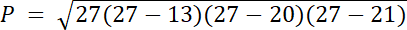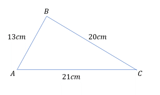 a, b, c–boki trójkąta, odpowiednio równe: 13 cm, 20 cm, 21 cm