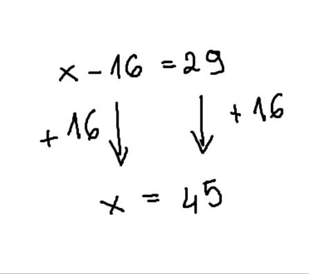 Wykonaj takie działania, by po lewej stronie został sam x. Dodaj 16 do obu stron.