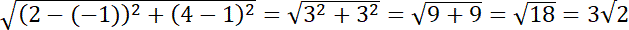 W celu obliczenia odległości między punktami A(xa, ya) i B(xb, yb) skorzystaj z następującego wzoru: |AB| =