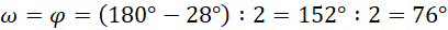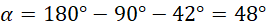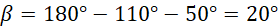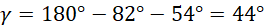 Trójkąt na rysunku jest równoramienny, a więc kąty przy podstawie są równe. Suma miar kątów w trójkącie jest równa