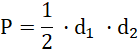 Pole rombu obliczasz, mnożąc długości jego przekątnych i dzieląc je przez 2.