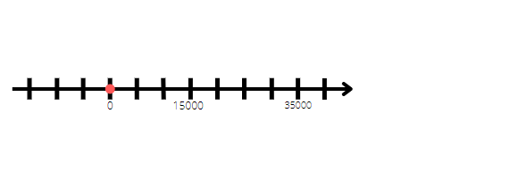 Są 3 punkty dzielące odległość między 15 000 a 35 000 na 4 równe części, więc musimy 35 000 – 15 000 = 20 000, wystarczy 20 000 : 4 = 5 000. Nasza jednostka to 5 000.