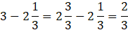 Zapisz liczbę całkowitą (3) w postaci ułamka, o takim samym mianowniku jak ułamek, a następnie odejmij od siebie te liczby.