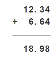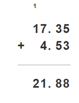 Ułamki dziesiętne dodaj pisemnie, zapisując liczby tak, aby ułamki znajdowały się pod sobą.